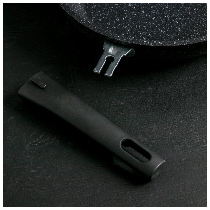 Сковорода, d:24 см, съёмная ручка, стеклянная крышка, антипригарное покрытие, цвет тёмный мрамор интересное: