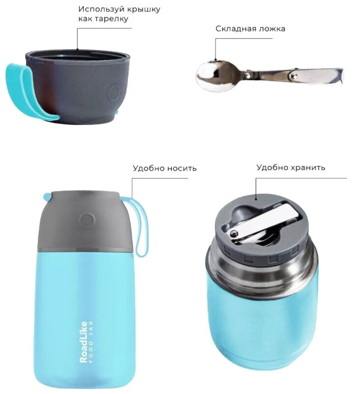 Термос для еды RoadLike Jar 420мл, голубой интересное: