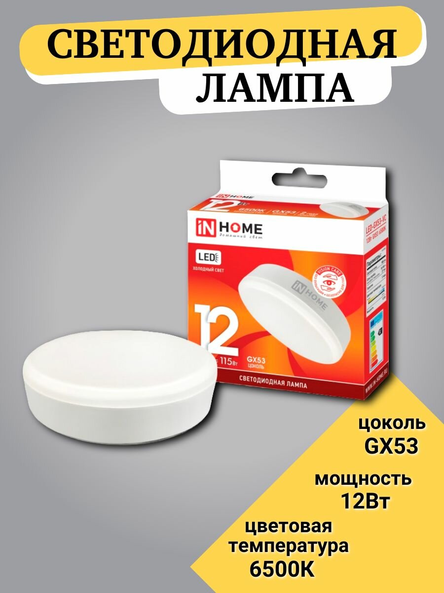 Лампа светодиодная IN HOME LED-GX53-VC, GX53, 12 Вт, 6500 К