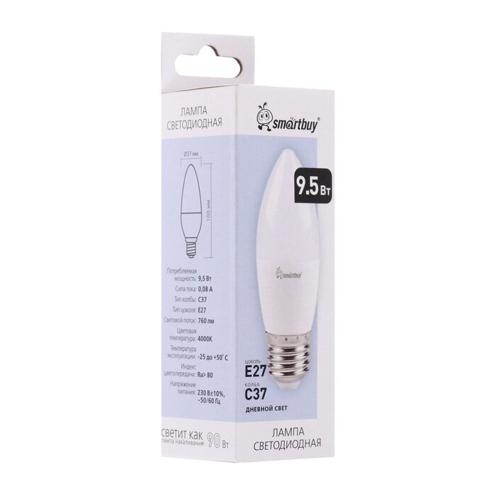 Лампа светодиодная Smartbuy, Е27, C37, 9.5 Вт, 4000 К, дневной белый свет интересное: