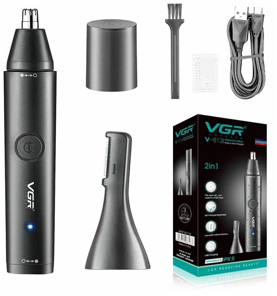 триммер для носа, ушей и бровей, 2 в 1, VGR V-613,черный