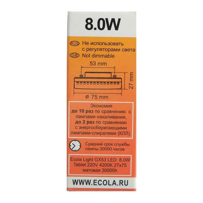 Лампа светодиодная Ecola Light, 8 Вт, GX53, 4200 K, 27x75 мм, матовое стекло интересное: