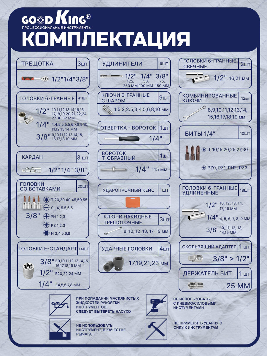 K-10150 Goodking Набор инструментов 150 предметов 1/4 3/8 1/2 трещотка K-10150 .