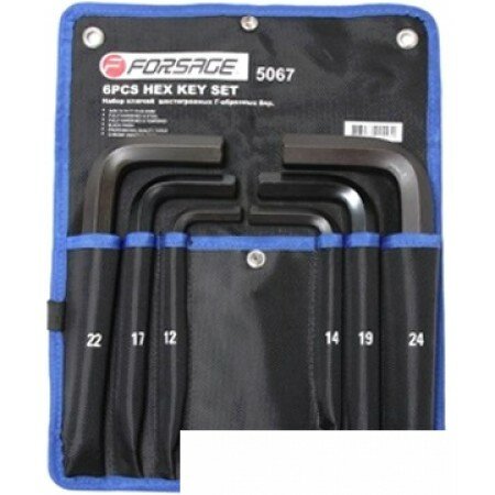 FORSAGE F-5067 набор ключей г-образных, 6 гр, 6 пр: 12, 14, 17, 19, 22, 24 мм, на полотне