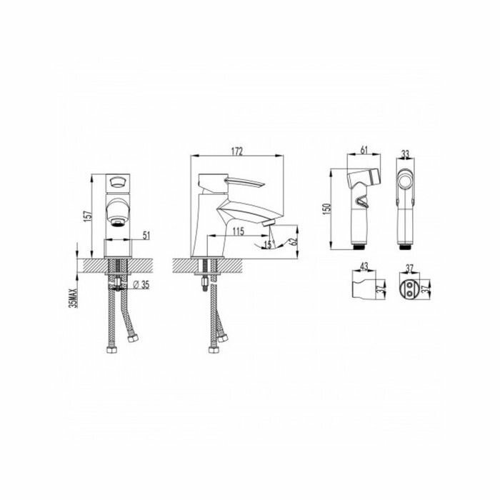| Комплектация | Аэратор, Керамический эко-картридж 35 мм, Аксессуары в комплекте: лейка гигиенического душа с регулятором напора, шланг 1,5 м, настенное крепление для лейки, Гибкая подводка 1/2" 35 с, Металлическая рукоятка |