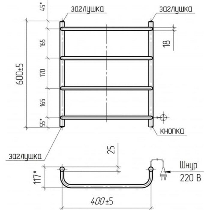 Полотенцесушитель электрический ТЕРА "Мост" 400х600 мм правый интересное: