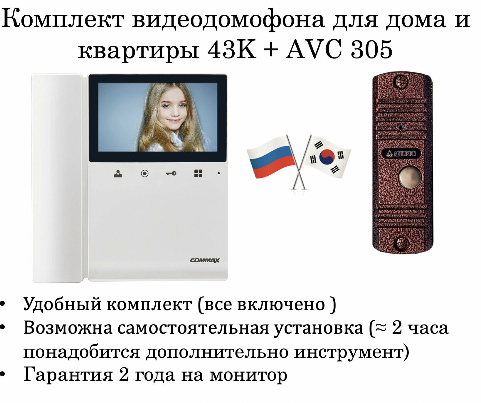 Комплект видеодомофона и вызывной панели COMMAX CDV-43K (Белый) / AVC 305 интересное: