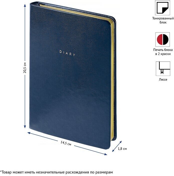 | Дополнительная информация | Индивидуальная упаковка есть Печать года на обложке нет Подходит под персонализацию да Размер 145*205 Тип недатированный Цвет обложки синий Вид товара ежедневник Формат A5 Цвет среза золотой Печать форзаца однотонный Тип обложки твердая Цвет бумаги блока тонированный Плотность блока 70 Количество листов 136 Тип скрепления сшивка Материал обложки искусственная кожа Закладка-ляссе есть Прошивка обложки нет Металлические уголки нет Уголки обложки скругленные Уголки внутреннего блока скругленные Справочный материал есть Тип застежки нет Выборочный лак нет Блестки/глиттер нет Тиснение фольгой Конгрев нет Ламинация нет Печать блока 2 краски Поролоновая прослойка нет Географическая карта есть Вырубной блок нет Перфорированные уголки нет |