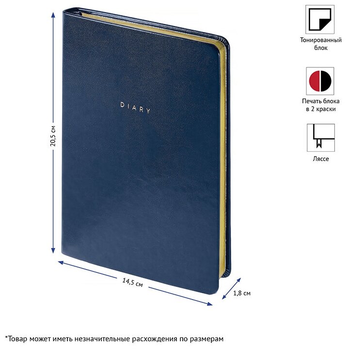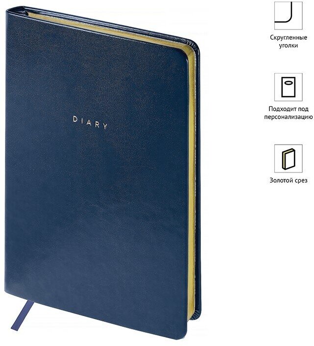 Ежедневник спейс недатированный OfficeSpace "Windsor", A5, 136 л, кожзам, синий, золотой срез
