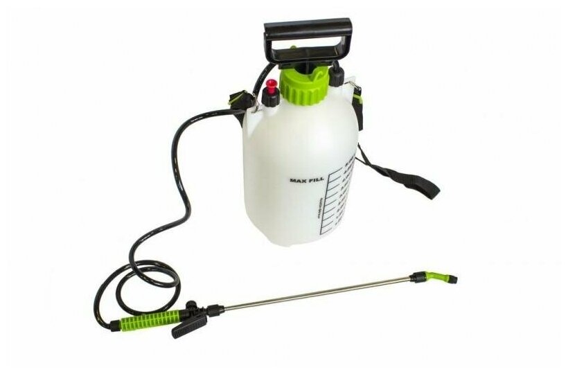 Опрыскиватель ручной пластиковый со шкалой заполнения и ремнем ''через плечо'',8л(Ø18см,высота52см,шланг 125см,пистолет 60см) интересное: