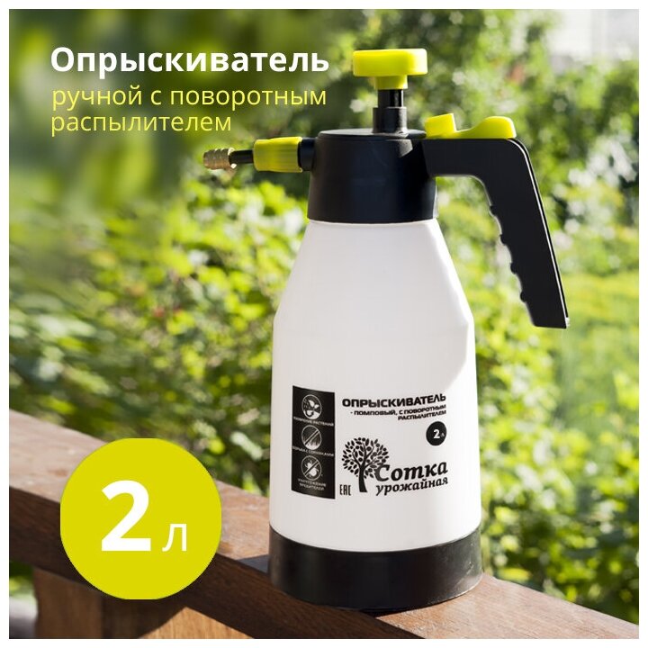 Опрыскиватель помповый садовый для растений, для цветов 2 л с поворотным распылителем (распылитель садовый помповый) интересное: