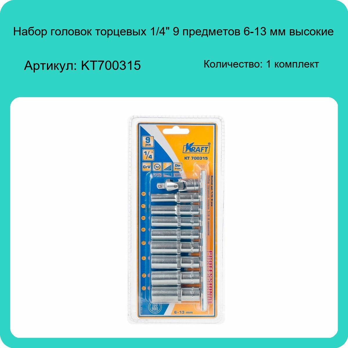 Купить KT700315 KRAFT Набор головок 9 предметов Г6-Г13 (1/4)