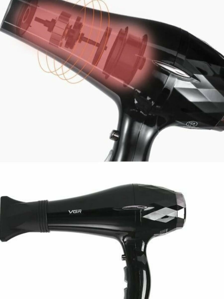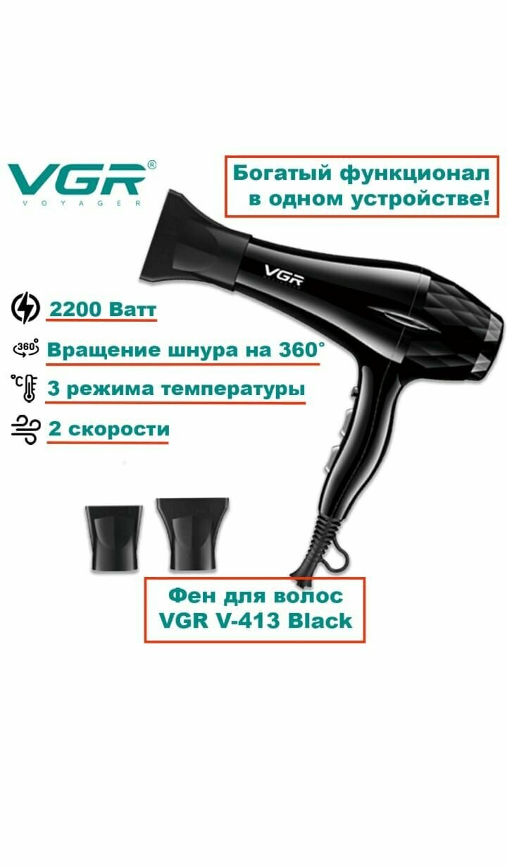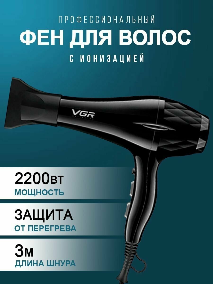 Профессиональный, Фен для волос VGR V-413, черный