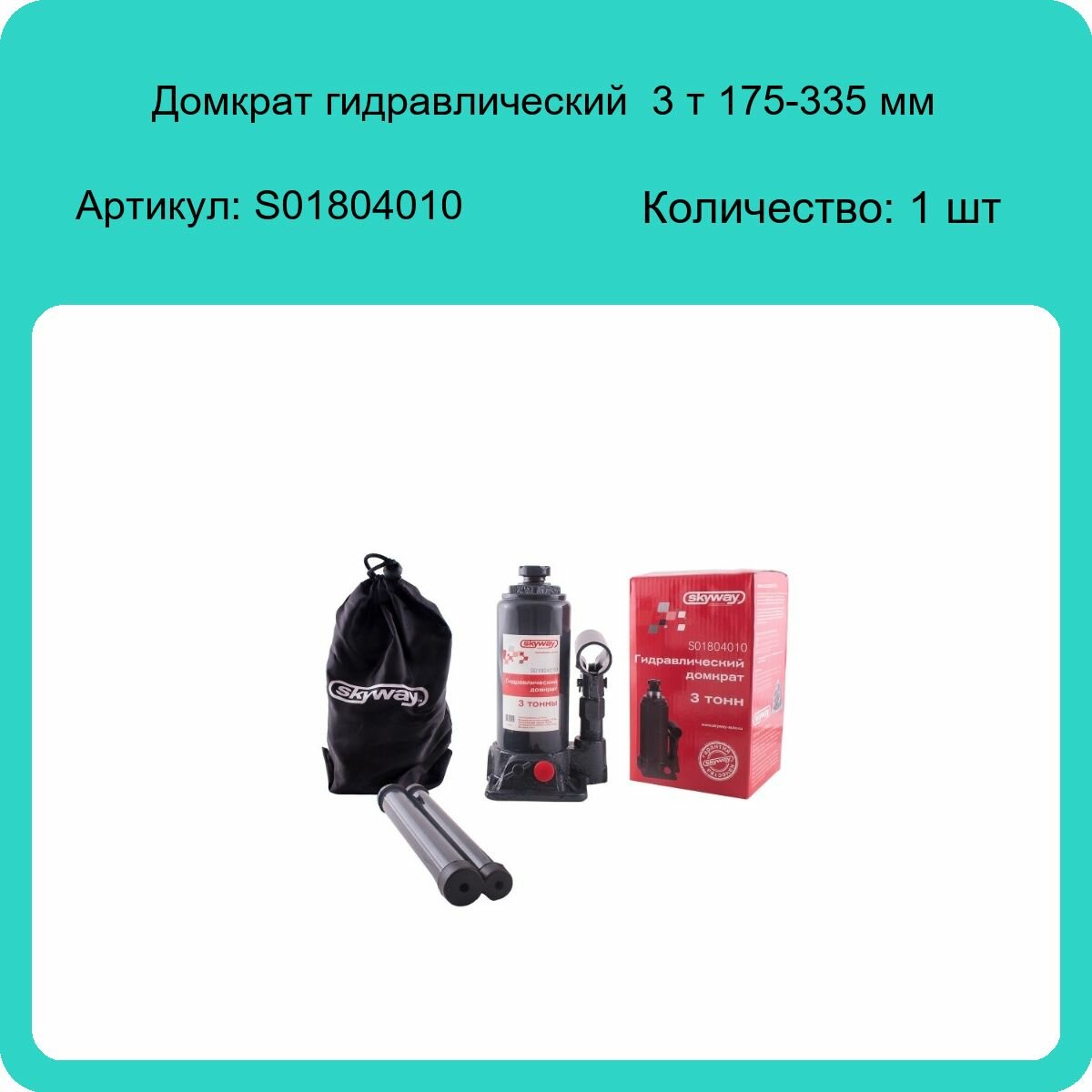 Домкрат гидравлический бутылочный 3т h 175-335мм Skyway с клапаном в коробке+сумка