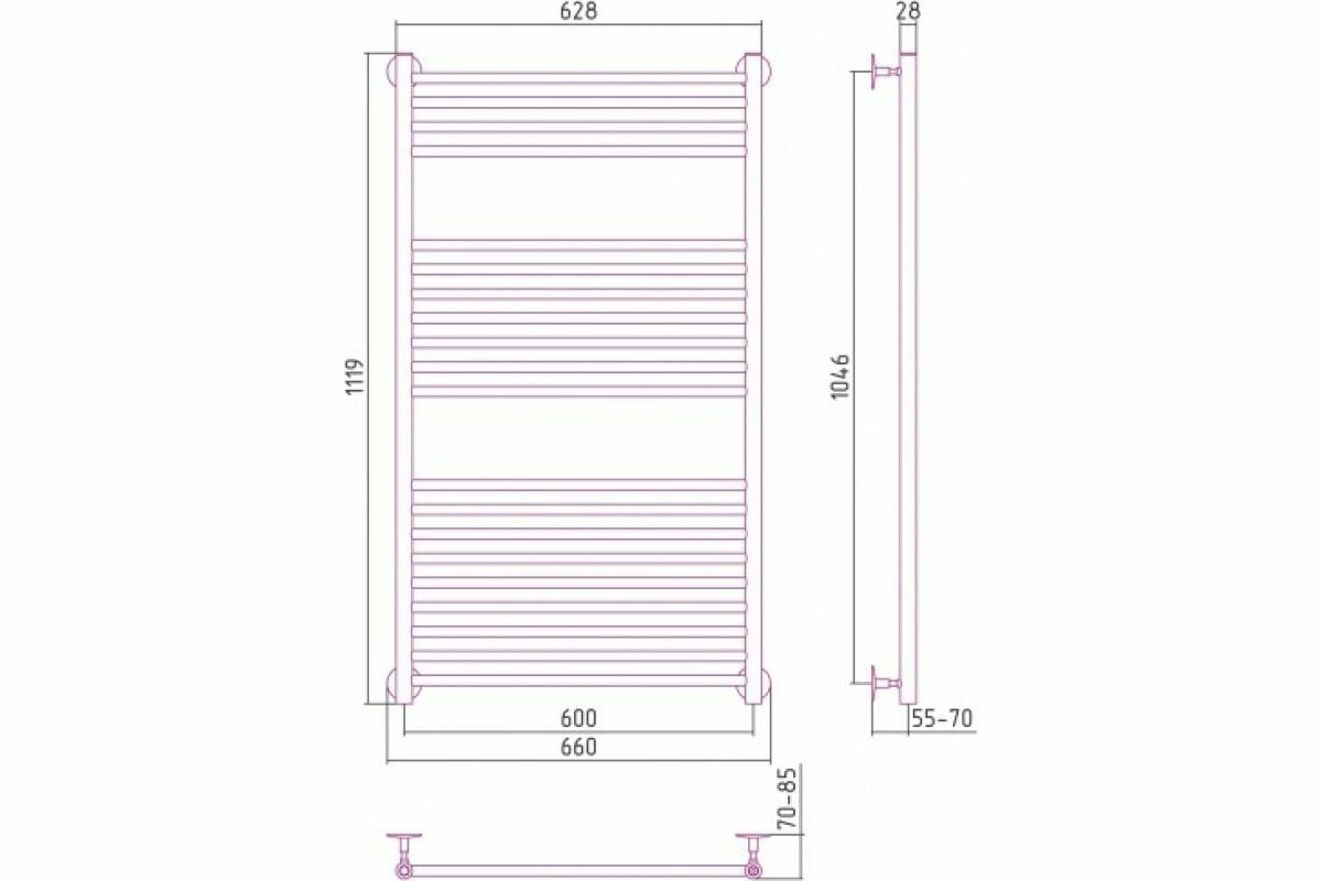 Полотенцесушитель водяной 1119x660 Стилье Универсал-53 00653-1260