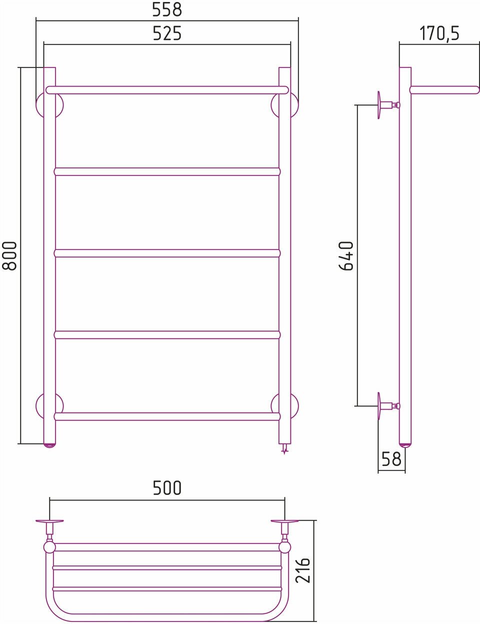 Купить Полотенцесушитель электрический Стилье Формат 30 П 800х500 (Полка + 4) П16 Без покрытия