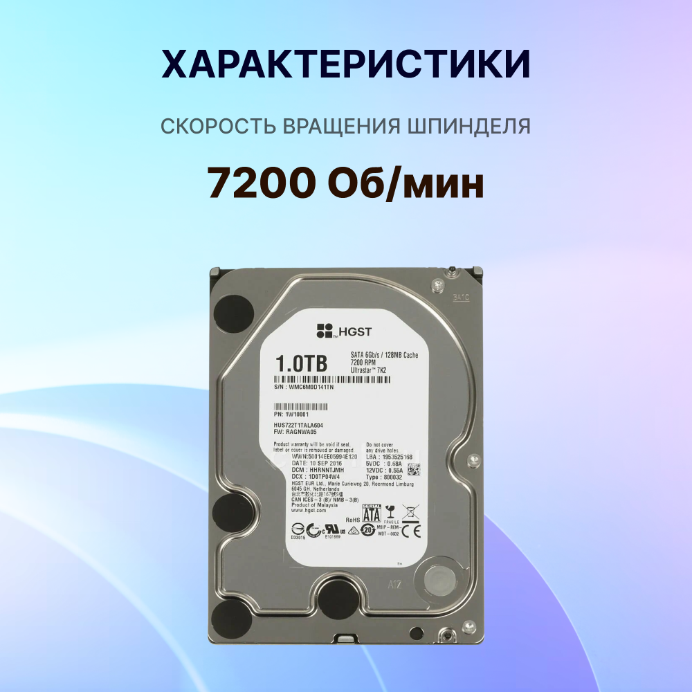 Жесткий диск 1 Тб Western Digital Ultrastar 7K2 (1w10001) (hus722t1tala604) 3.5", Sata-iii, 720