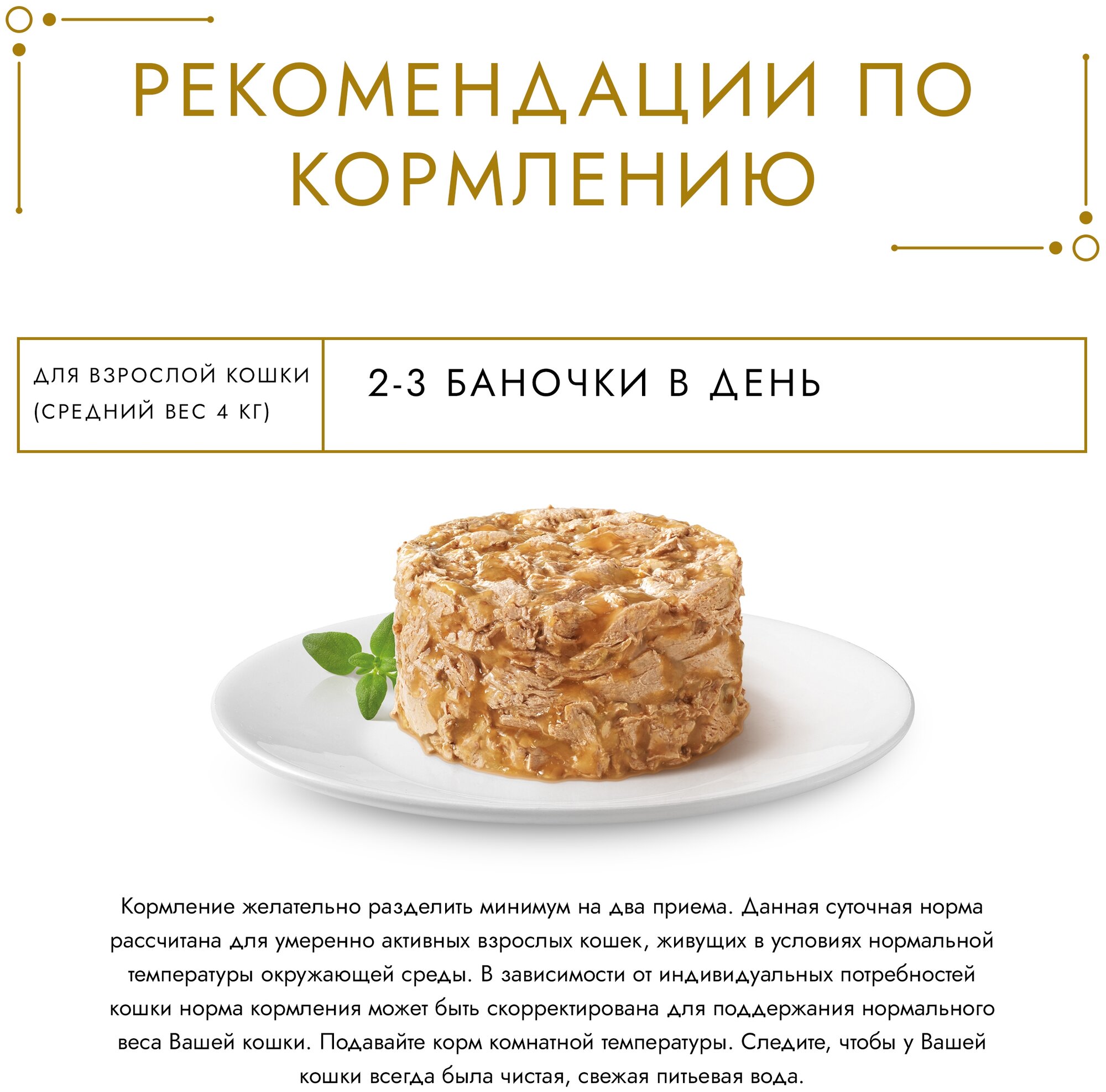 | Дозировка | cуточная норма: 2-3 баночки в день для взрослой кошки (средний вес 4 кг), в несколько приемов |