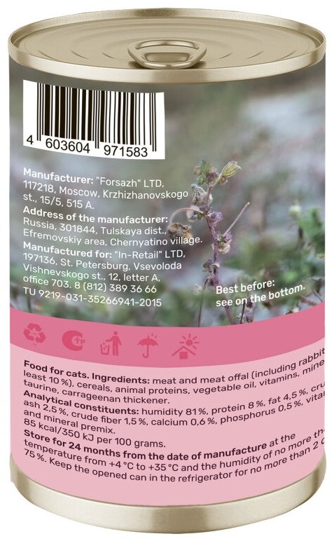 Консервы для кошек Нежный кролик, 415 гр