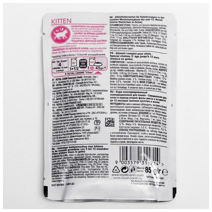 Купить Royal Canin Влажный корм RC Kitten Instinctive для котят, в желе, пауч, 85 г