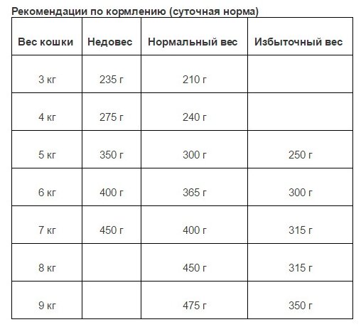 | Дозировка | 2 кг: 130 г - 180 г 3 кг: 175 г - 200 г 4 кг: 210 г - 250 г 5 кг: 245 г - 285 г 6 кг: 275 г - 320 г |