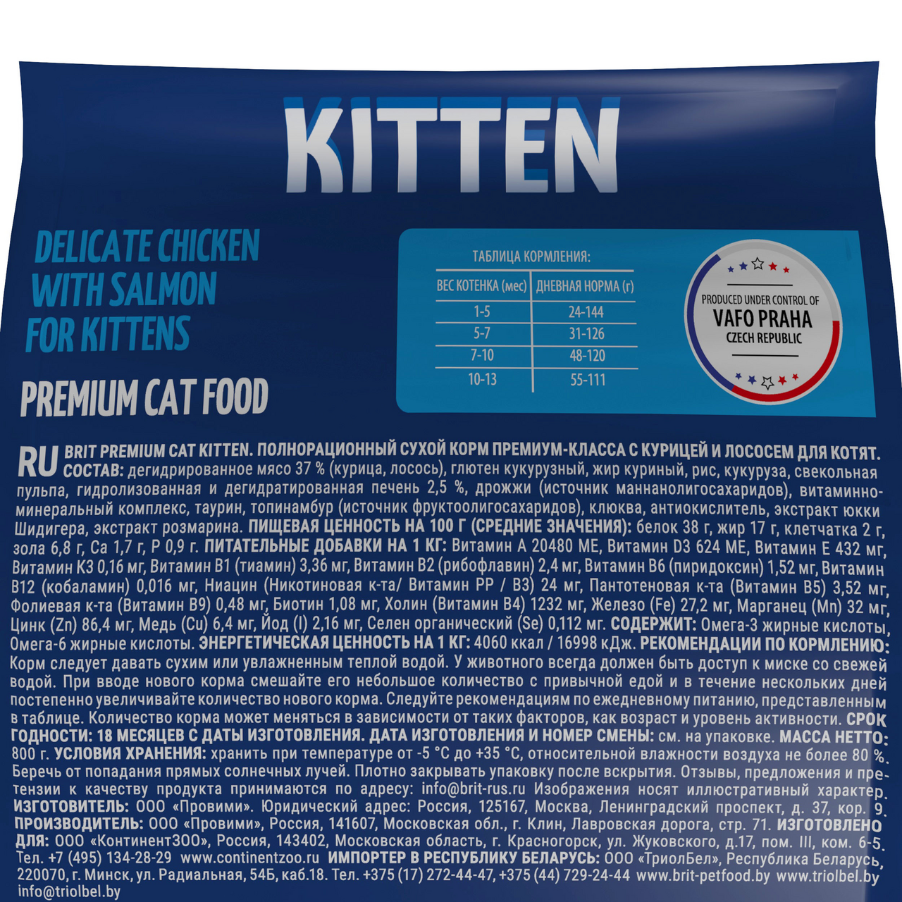 Brit: Premium, Сухой корм с курицей и лососем, для котят, Cat Kitten, 800 гр.