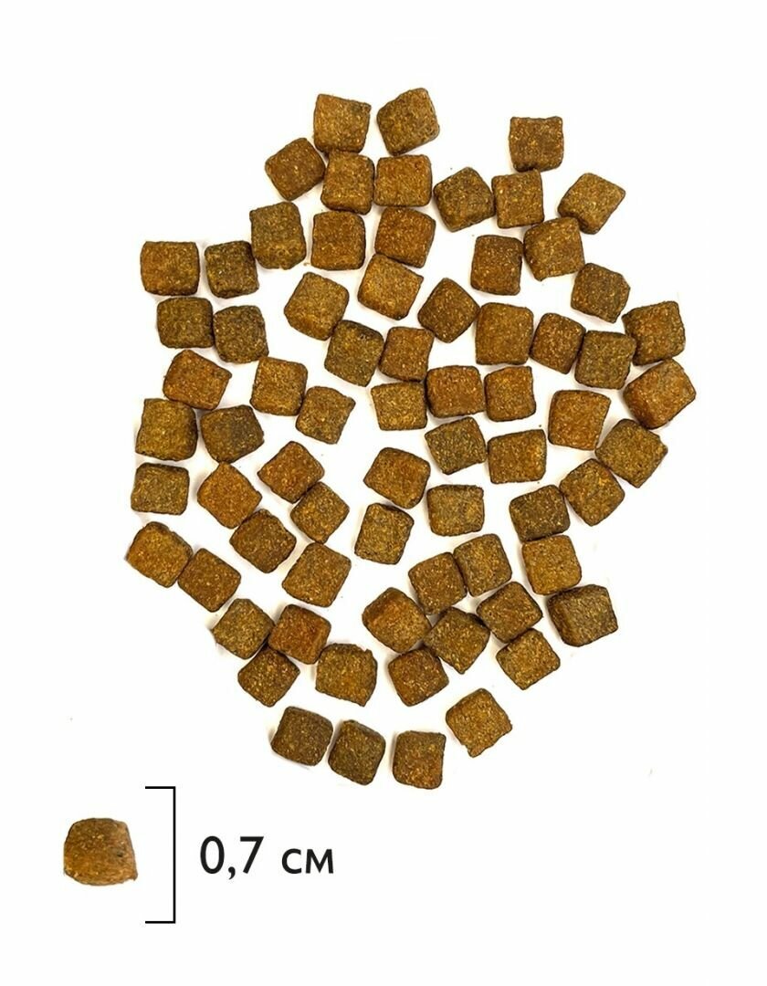 | Состав | дегидрированное мясо 37% (курица, лосось), глютен кукурузный, жир куриный, рис, кукуруза, свекольная пульпа, гидролизованная и дегидратированная печень 2.5%, дрожжи (источник маннанолигосахаридов), витаминно-минеральный комплекс, таурин, топинамбур (источник фруктоолигосахаридов), клюква, антиокислитель, экстракт юкки Шидигера, экстракт розмарина |