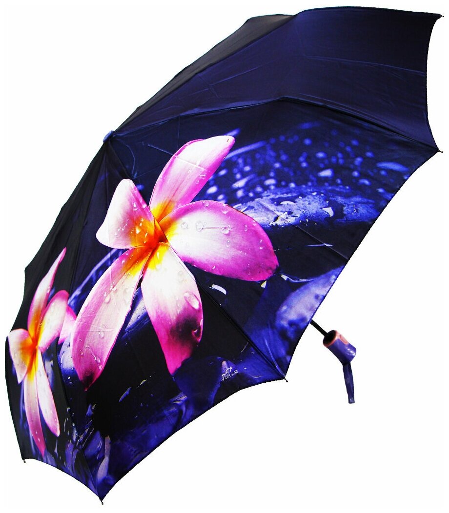 Зонт женский автомат, зонтик взрослый складной антиветер 1296, Черный-B
