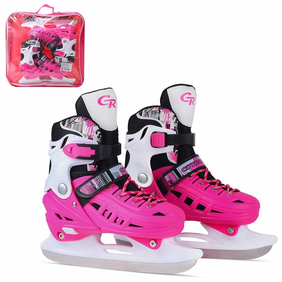 Купить Детские раздвижные ледовые коньки, лезвие не ржавеющая сталь, пластиковый мысок, розовый, M(34-38)