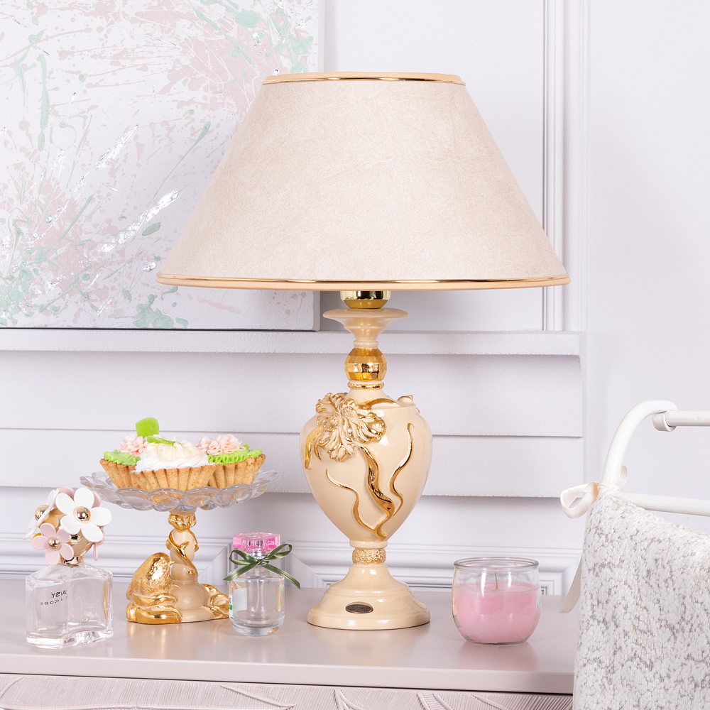 Купить Настольная лампа Bogacho Флер де Лис бежевая с молочным абажуром