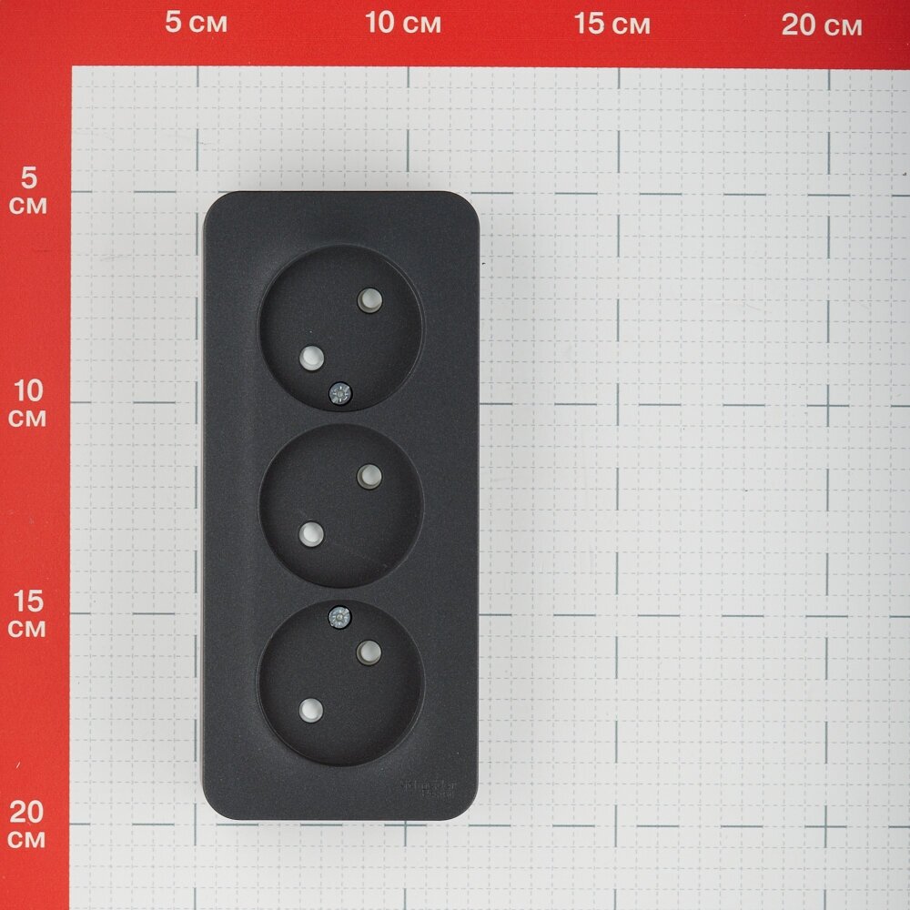 Розетка 3-м ОП Blanca 16А IP20 250В без заземл. защ. шторки с изолир. пластиной антрацит SchE, SCHNEIDER ELECTRIC BLNRA001316 (1 шт.)