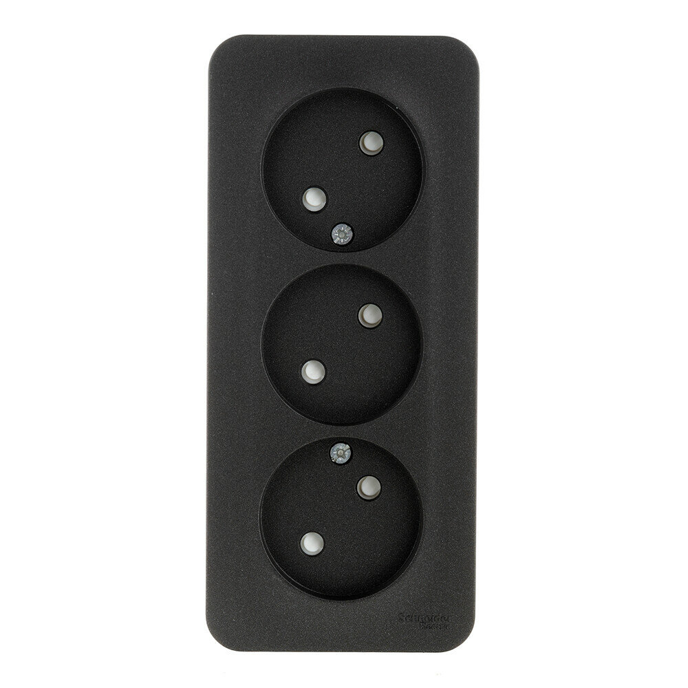 Розетка Systeme Electric Blanca тройная BLNRA001316 открытая установка антрацит без заземления IP20 со шторками