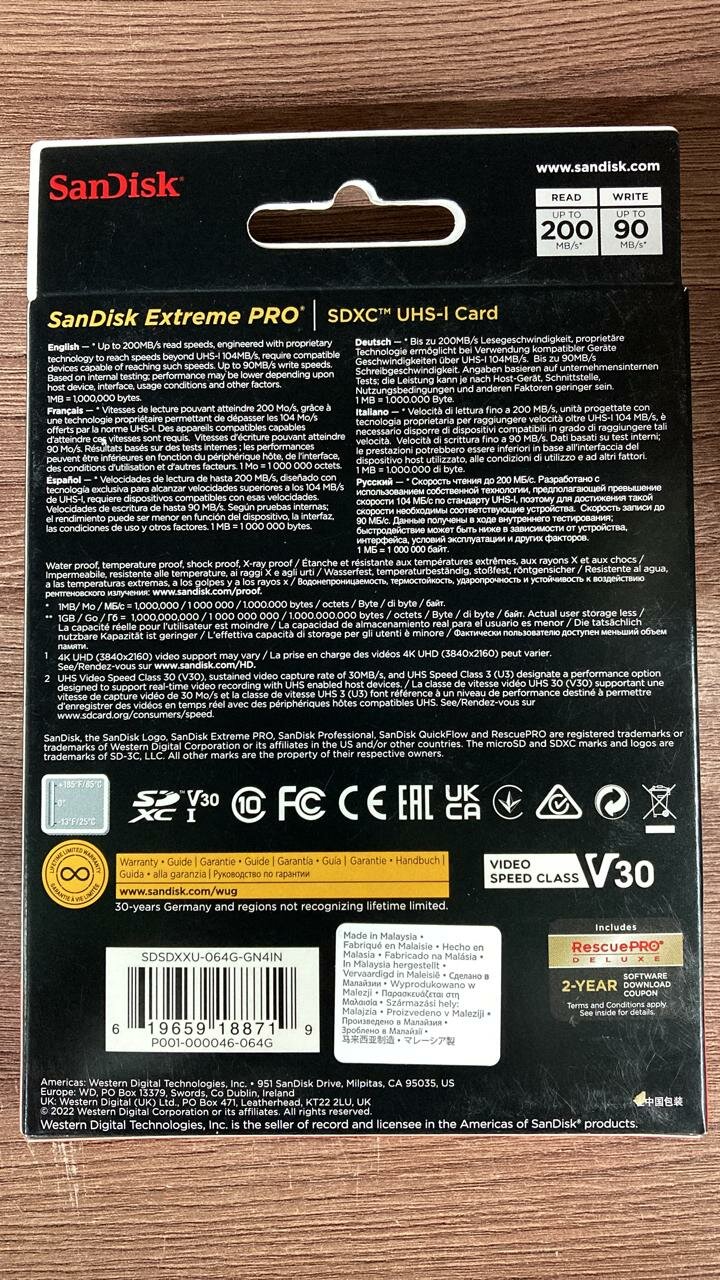 Ниже Вы можете прочитать отзывы на Карта памяти 64Gb SanDisk Extreme Pro SDXC UHS-I U3 V30 (200/90 MB/s), ознакомится с подробными характеристиками, посмотреть интересные обзоры и фотографии на Карта памяти 64Gb SanDisk Extreme Pro SDXC UHS-I U3 V30 (200/90 MB/s).