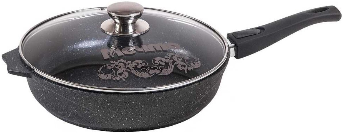 Сковорода Мечта Гранит Black литая с антипригарным покрытием, съемная ручка, стеклянная крышка, 28см
