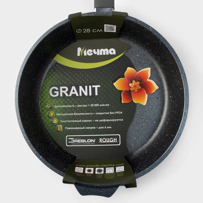 Сковорода «Гранит», d=28 см, пластиковая ручка, антипригарное покрытие, цвет серый интересное: