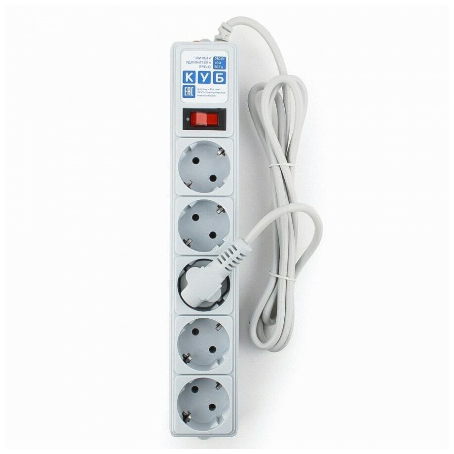Сетевой фильтр Power Cube B 1.9 м 5 розеток (серый) 10А/2,2кВт(SPG-B-6)