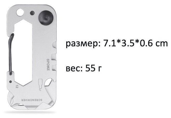 | Инструменты (функции) | гаечный ключ / карабин / линейка / отвертка / открывалка для бутылок / ключ для спиц / крестовая отвертка / отверстие для повешивания |