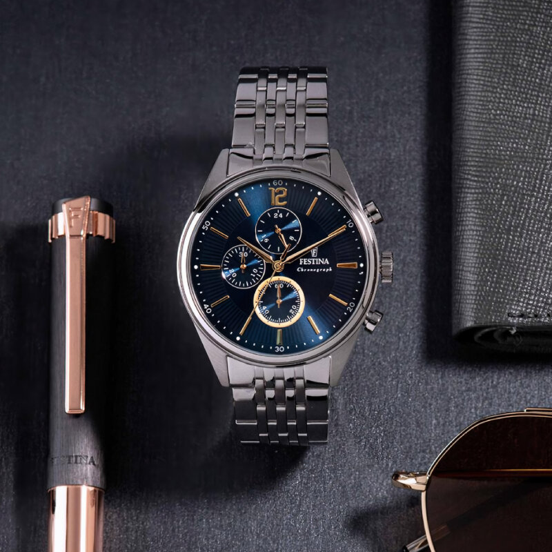 Наручные часы FESTINA F20285/3 кварцевые, хронограф, секундомер, водонепроницаемые, серебряный/синий