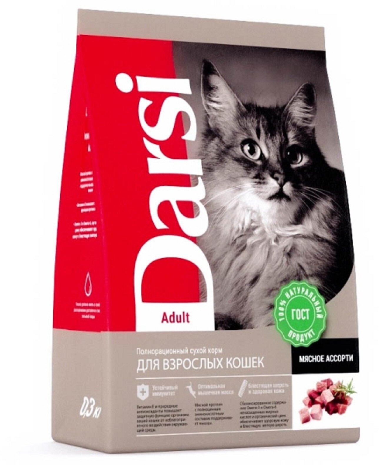 Купить Сухой полнорационный корм для кошек Darsi Adult Мясное ассорти, 0,3 кг