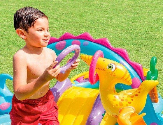 Купить Intex Надувной игровой центр с горкой от 2 лет Intex Динолэнд (57135) 302х229х112 см