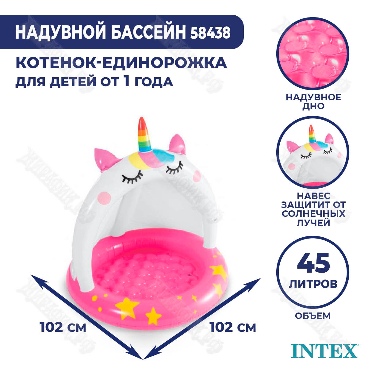 СохранитьДетский надувной бассейн с навесом intex Катикорн 102х102 см 1-3 лет 58438 /Бассейн для дачи интересное: