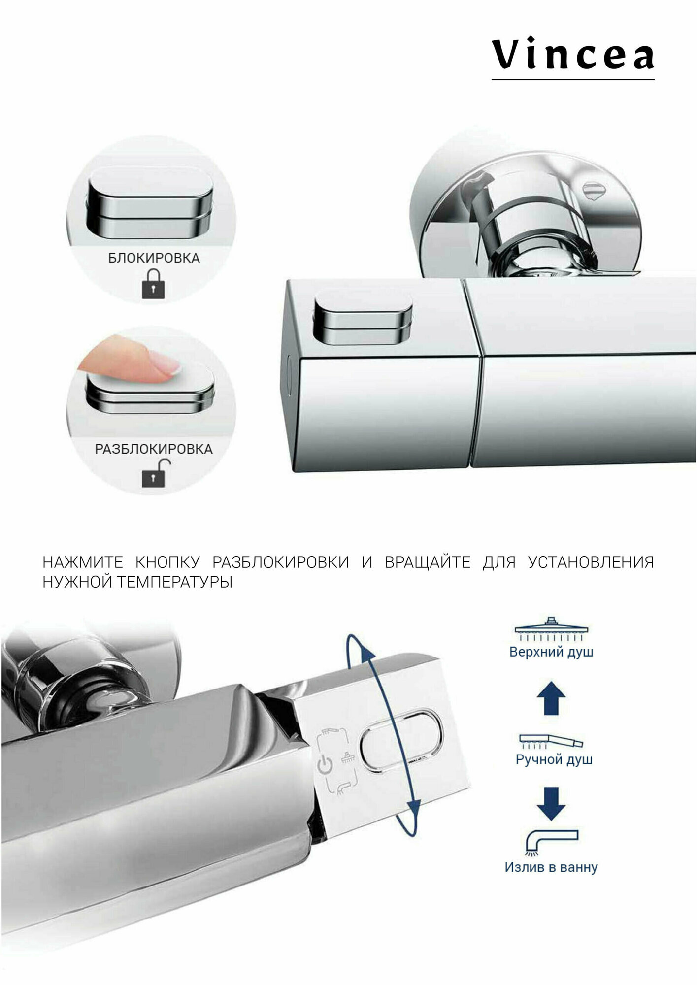 Душевая система Vincea Next VSFS-1N0TCH с термостатом Хром