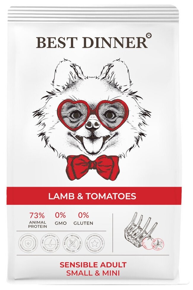 Купить Бест Диннер Adult Sensible Mini сухой корм для собак мелких пород, ягненок и томаты, 3 кг