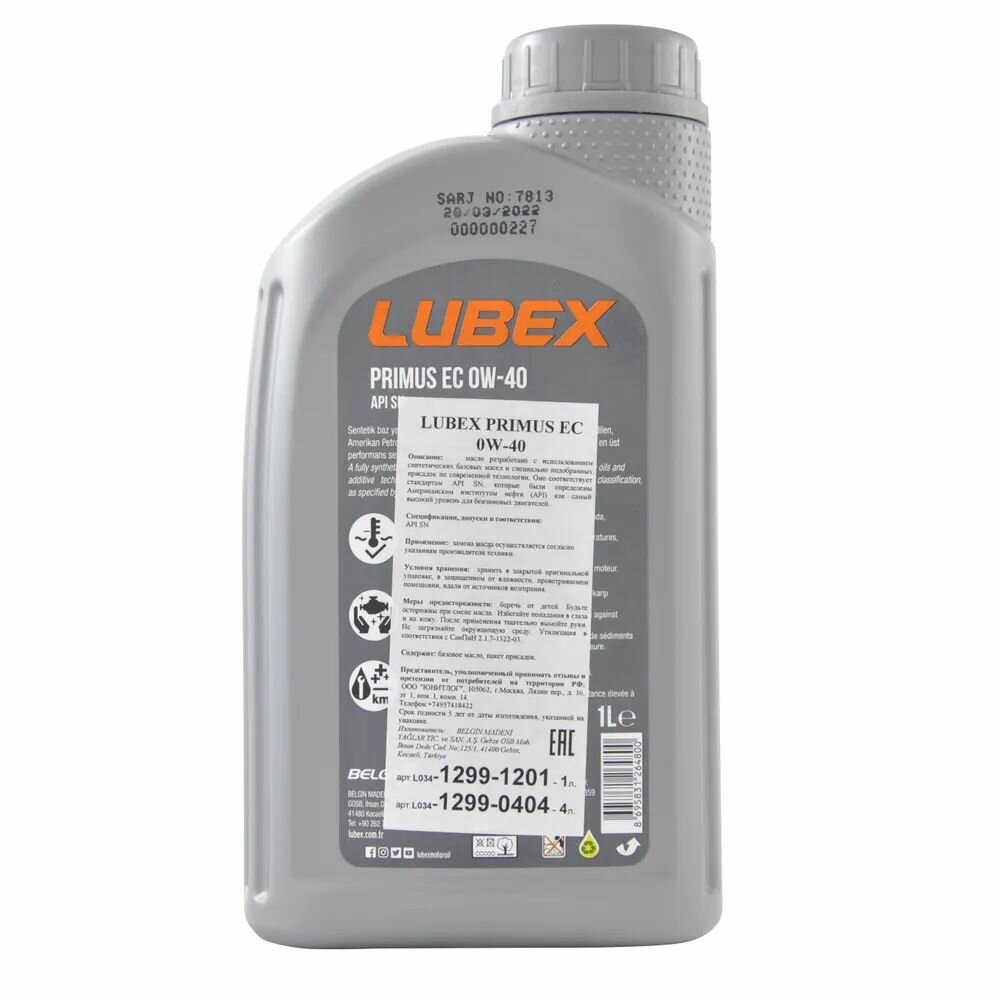 Купить L034-1299-1201 LUBEX Синтетическое моторное масло PRIMUS EC 0W-40 SN (1л)