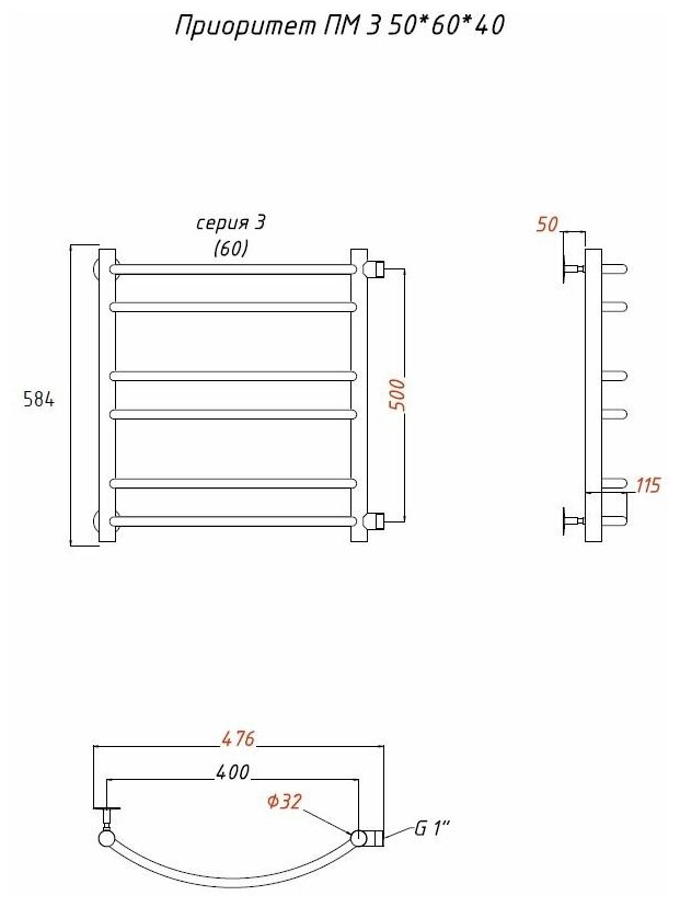 Полотенцесушитель Тругор Приоритет ПМ 3 50*60*40 (ЛЦ2) Приоритет3/ПМ506040