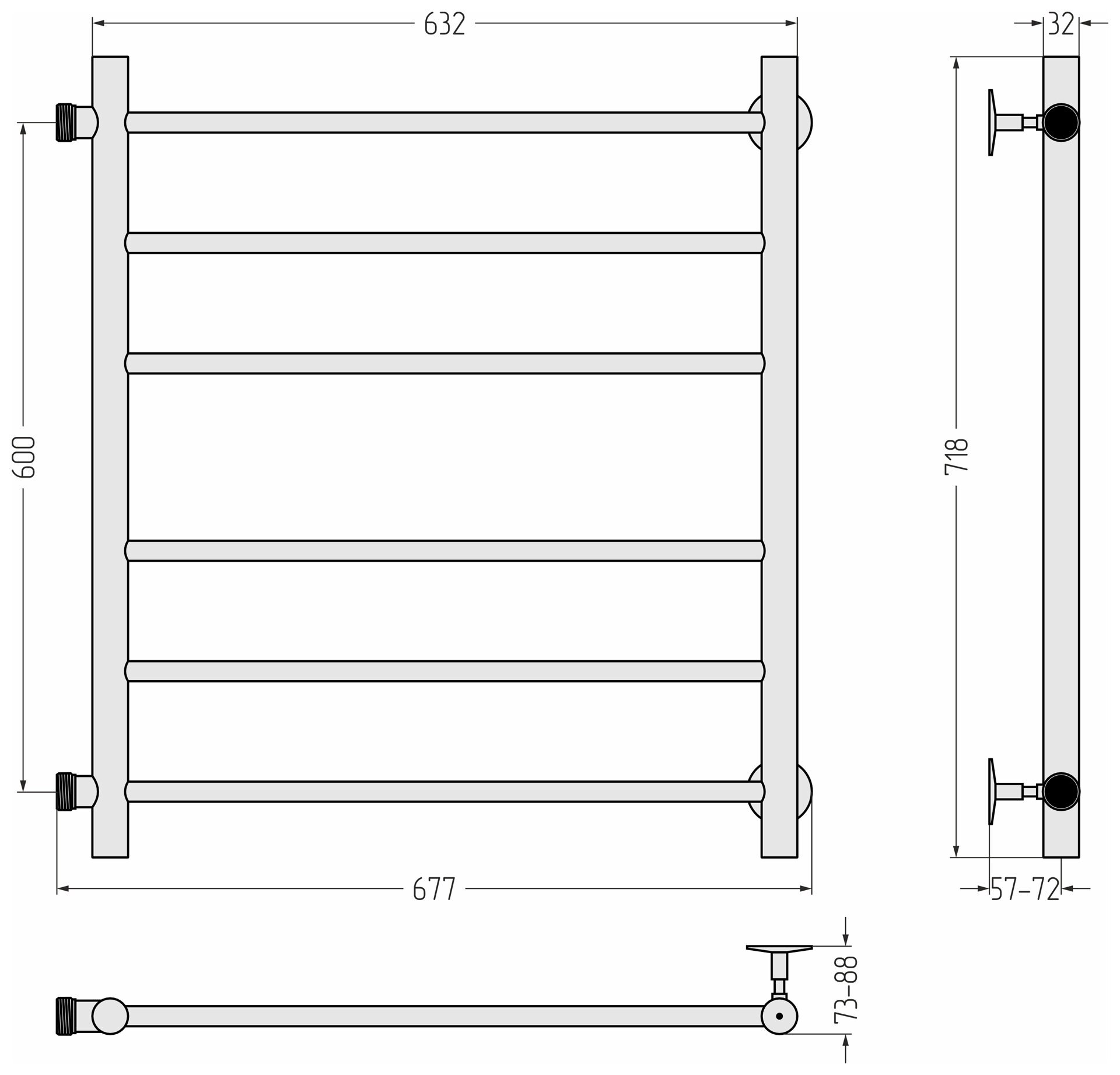 Полотенцесушитель водяной Стилье Версия-Б, 600x600, чёрный 17610-6060