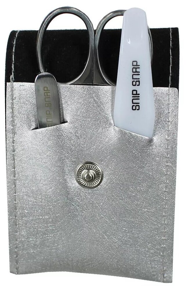 Купить "SNIP SNAP / Маникюрный набор (ножницы, пилочка и пинцет) в кожаном чехле, серебристый"