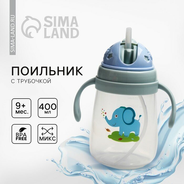 Поильник с трубочкой, с ручками Сима-ленд, 400 мл, 4724446 микс