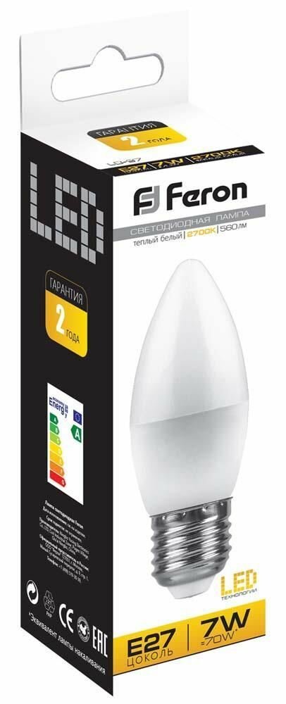 Светодиодная лампа FERON 7W 230V E27 2700K, LB-97 25758 интересное: