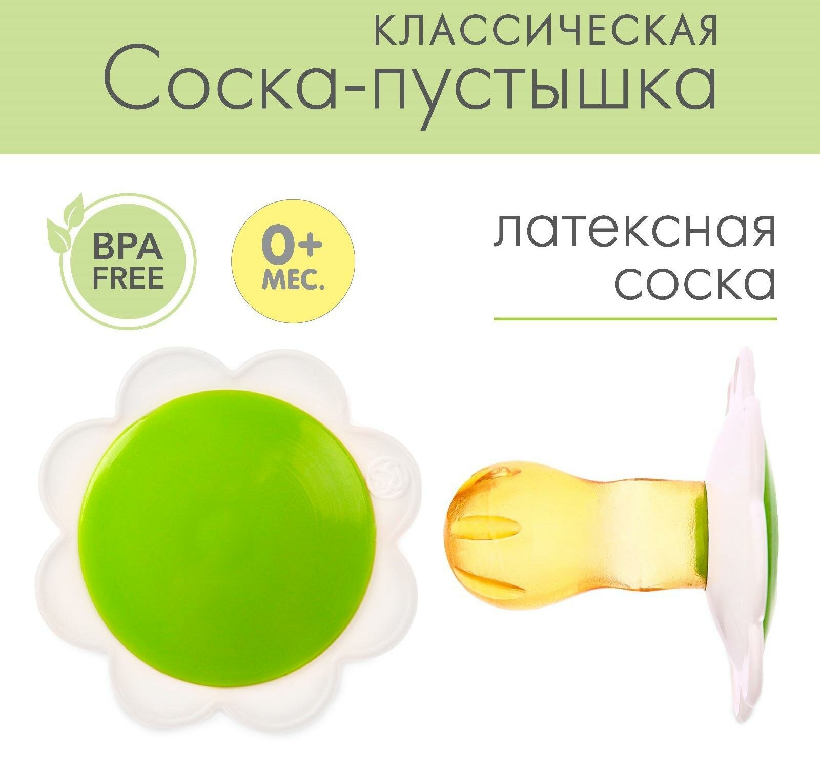 Соска-пустышка латексная классическая "Ромашка" без кольца, от 0 мес.